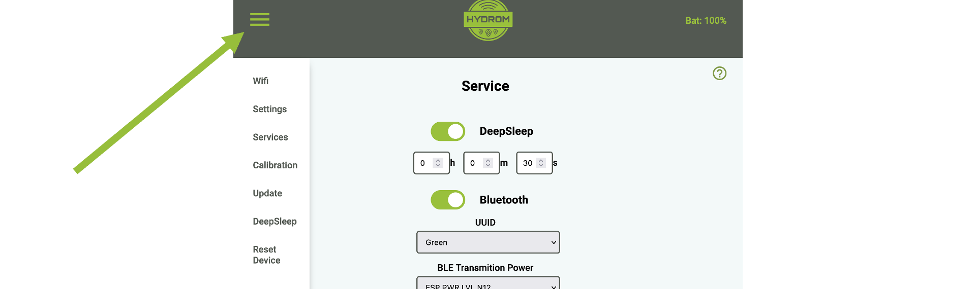 1. **Access to the user interface:** To make this setting, you must have access to the user interface. If this is not the case, look here to see how to do it: [https://github.com/BonorumSoft/Hydrom-Handbook/blob/main/EN/getting-started/establish-first-connection-to-the-hydrom/access-to-the-user-interface.md](https://github.com/BonorumSoft/Hydrom-Handbook/blob/main/EN/getting-started/establish-first-connection-to-the-hydrom/access-to-the-user-interface.md "mention")